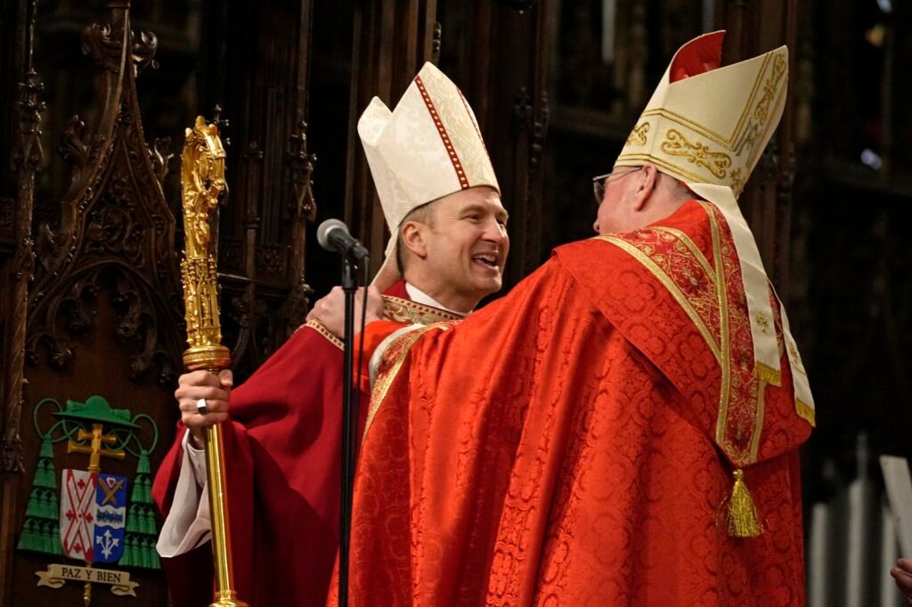 Applause and a standing ovation marked Archbishop Hicks’ formal acceptance of Pope Leo’s appointment, with the new shepherd of New York displaying the document to those present. He and Cardinal Dolan embraced, and Archbishop Hicks then seated himself at the cathedra, greeting a number of faith leaders — among them, Greek Orthodox Archbishop Elpidophoros of America and representatives of the Jewish and Muslim communities.
