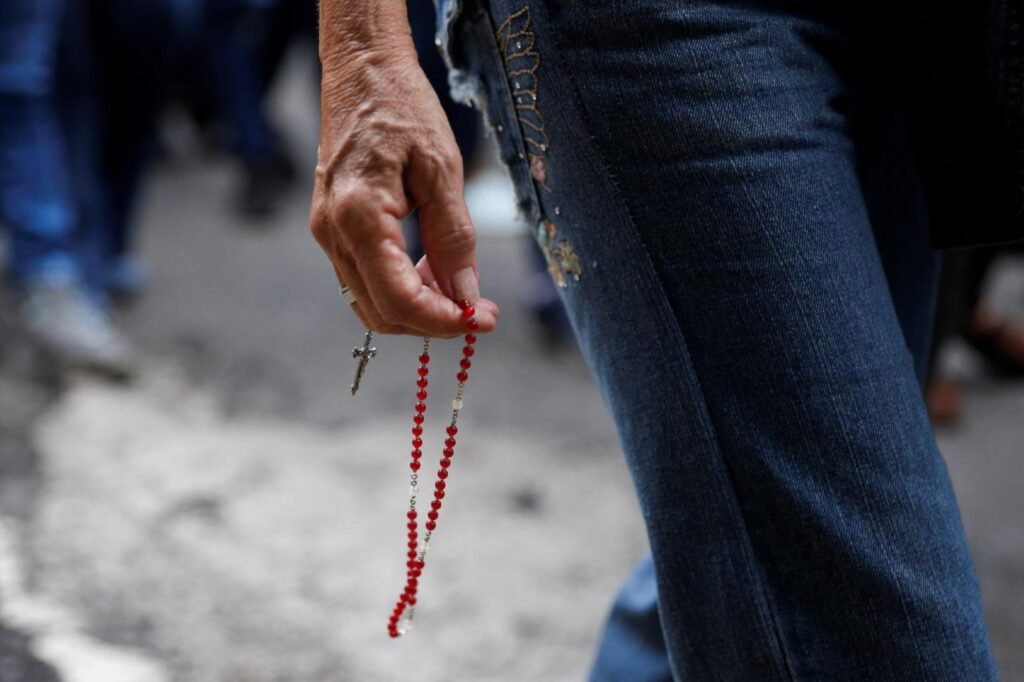 A person holds a rosary during the procession of “Divina Pastora” (“Divine Shepherdess”) in honor of Mary in Caracas, Venezuela, Jan. 14, 2026, the first religious gathering since the U.S. strike and capture of President Nicolás Maduro and his wife, Cilia Flores. (OSV News photo/Leonardo Fernandez Viloria, Reuters)