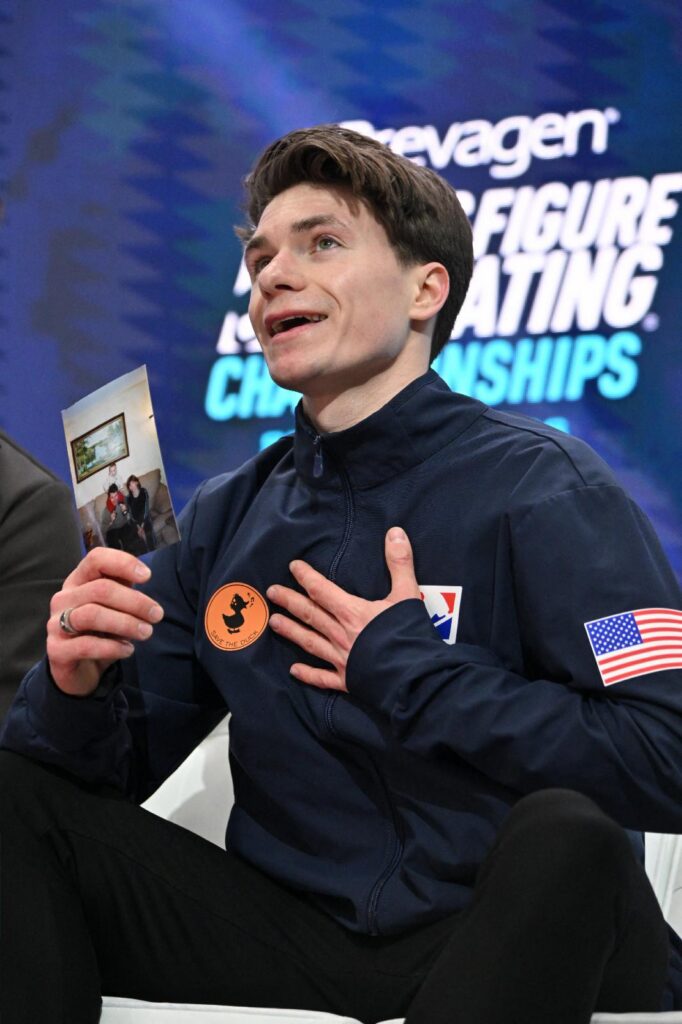 His parents, who were also his coaches and former Olympic pair skaters, had come to the U.S. from Russia in 1998 and transitioned to coaching. After his programs at the national championships in St. Louis, Naumov, 24, held up a picture of himself at age 3 on the ice with his parents on either side of him.