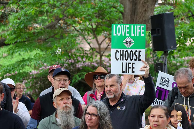 “We’ve been active mostly for the March for Life in D.C.,” said John Curran, who traveled with the Knights of Columbus Council 6828 from St. Bede Parish in Williamsburg. “But this year, with the new amendment that’s coming out, we put a bus together to come down. It’s one of the most important state marches that we’ve had yet.”